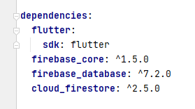 이것들은 pubspec.yaml에다가 다음과 같이 복사하면 되고, 버전은 달라질 수 있으므로, 아까 위에 알려준 공식링크에서