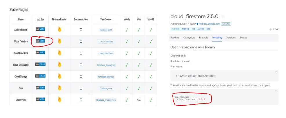 우선 다음 공식사이트로 접속한 뒤, firebase_core, firebase_database, cloud_firestore를 연결시키면 된다.