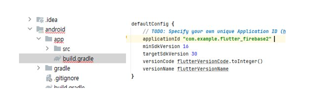 android-app-build.gradle에 있는 applicationId의 문자열 부분을 안드로이드 패키지이름으로 사용한다.