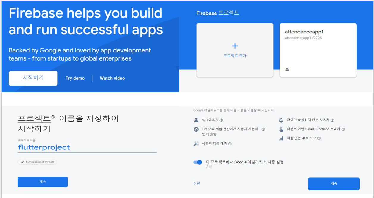 그뒤로 구글 애널리틱스는 있다면 그대로 쓰고, 없다면 생성한 뒤, 프로젝트 만들기를 누르면 된다.