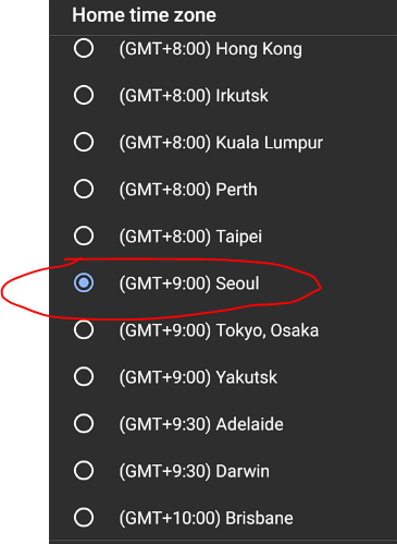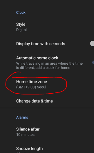 3. Home time zone을 찾는다
