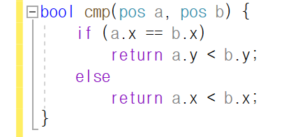 11650번 코드에서 사용하는 cmp, x 우선 오름차순 정렬이다.
