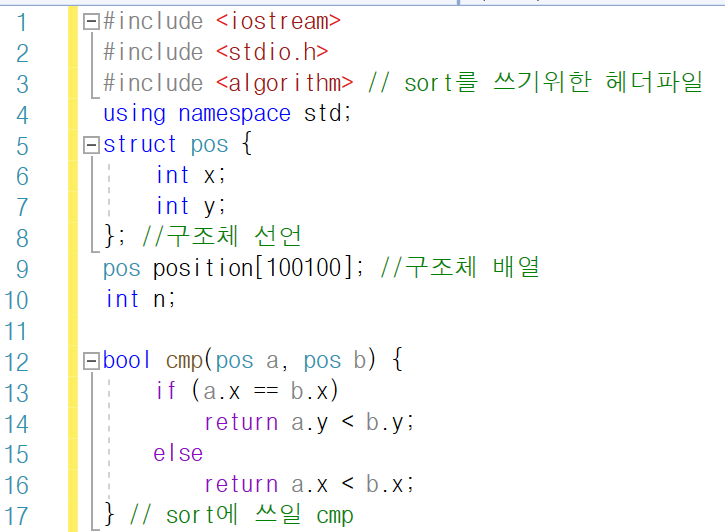 3. 구조체에 대한 C++ sort의 사용법(사용자 정의 함수 정렬) (백준 11650번 기반으로)