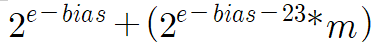 M: M의 경우 가수부를 정수처럼 계산한 m을 통해 1+(m/2^23) (23은 가수부 bit) 으로 계산하면 된다.