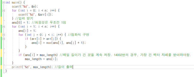 핵심적인 아이디어는 앞에 것들을 다 확인해서 나보다 작은 수 들중 가장 긴 부분수열을 찾는다는 것이다.