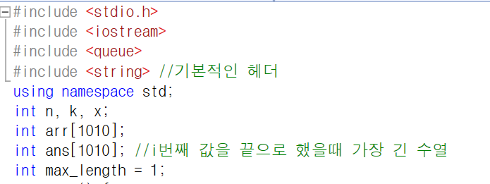 ans[i]=0~ i-1까지의 원소중에서 i번째 원소보다 값이 작은 것중 ans(길이)가 가장 긴 길이+1로 계산