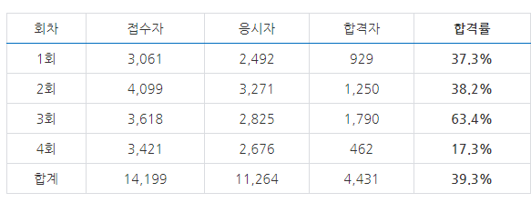 합격률에서 보다시피 비교적 쉽다. 기출문제만 많이풀어보고 책도 훑어보면 충분!